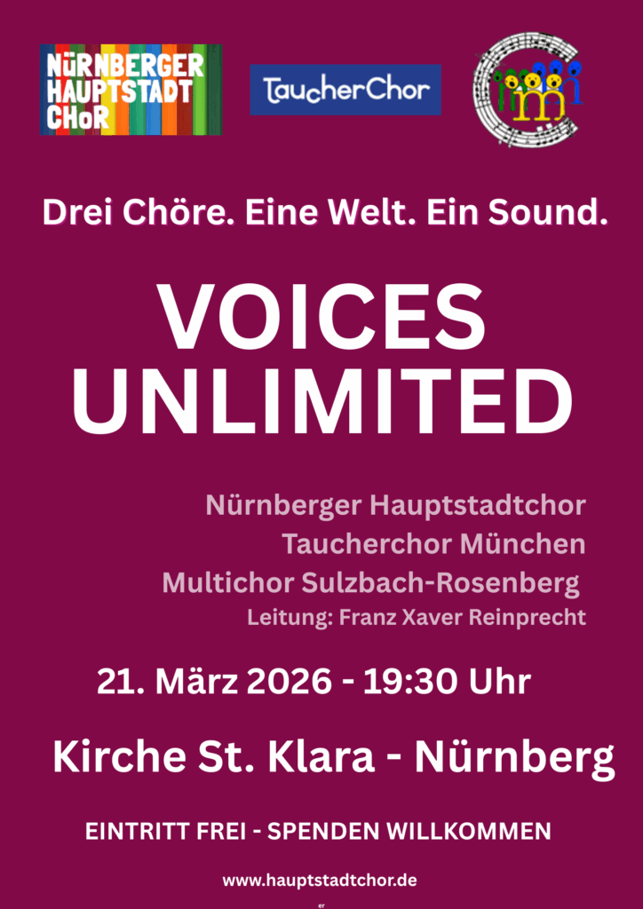 Sa, 21. März 2026, 19:30 Uhr: Drei-Chöre-Konzert in der Klarakirche Nürnberg